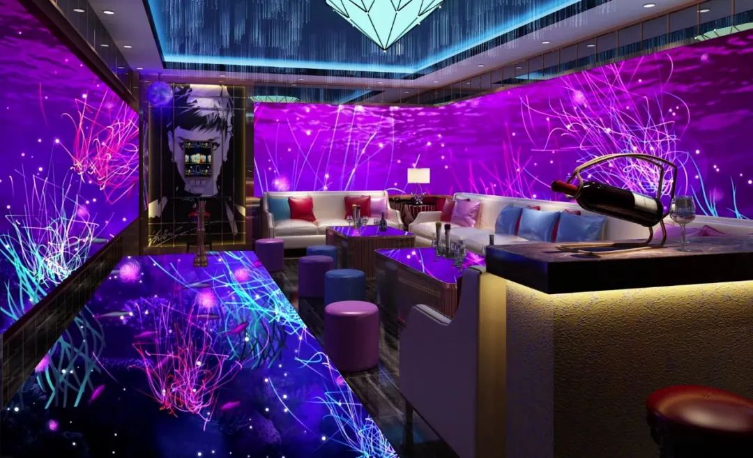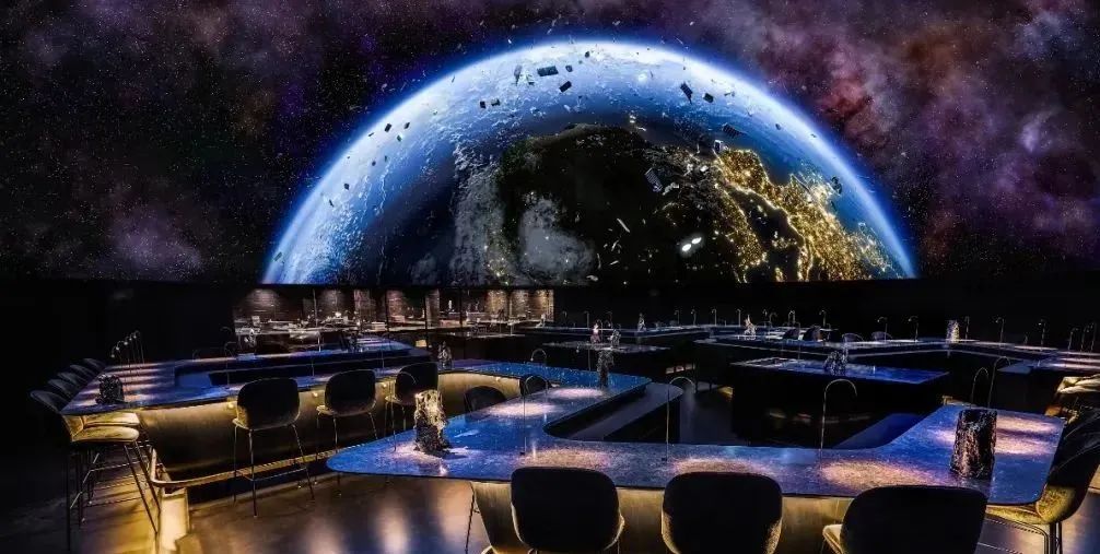 大面積的視頻影像可以帶領用餐者進入全新的虛擬空間,不同的主題還能呈現(xiàn)不一樣的效果,例如海底、星空等場景都可打造,能給用餐者帶來新穎的體驗感。