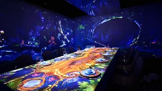 沉浸式餐廳除了可以帶來強烈的視覺沖擊,還能加入多媒體互動系統(tǒng)。