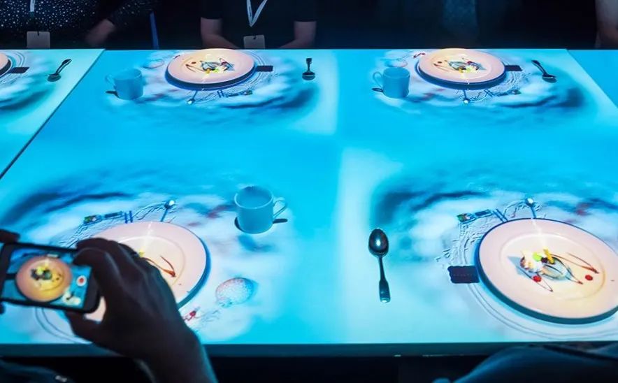 將食物以桌面互動投影的形式呈現(xiàn),顧客可以在用餐期間與影像進行互動、游戲等,體驗會更加深刻。