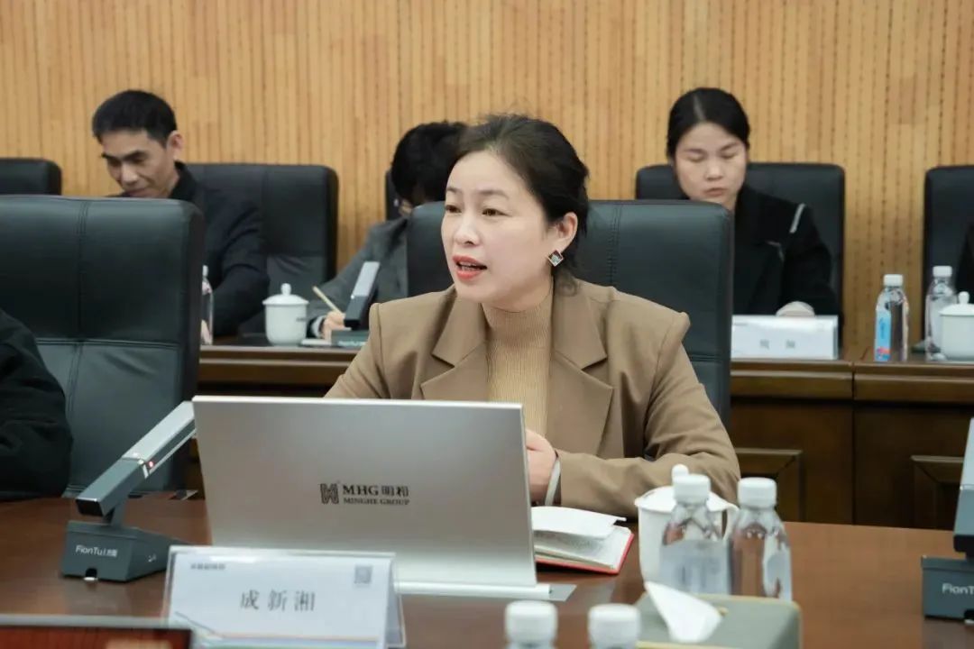 作為全國(guó)人大代表的成新湘,剛剛從2024“兩會(huì)”中榮耀歸來(lái),她結(jié)合履職的所見(jiàn)所聞,全面?zhèn)鬟_(dá)了“熱氣騰騰”的全國(guó)“兩會(huì)”精神,帶領(lǐng)全員認(rèn)真學(xué)習(xí)了習(xí)近平總書(shū)記在兩會(huì)期間發(fā)表的系列講話及政府工作報(bào)告等內(nèi)容。她表示,習(xí)近平總書(shū)記提出發(fā)展新質(zhì)生產(chǎn)力,強(qiáng)調(diào)以科技創(chuàng)新為引擎,不僅是對(duì)傳統(tǒng)生產(chǎn)力質(zhì)的提升,更是對(duì)經(jīng)濟(jì)發(fā)展模式的深刻變革,代表了新時(shí)期推動(dòng)經(jīng)濟(jì)發(fā)展的決定力量,指明了我國(guó)經(jīng)濟(jì)高質(zhì)量發(fā)展的主攻方向。她在本次兩會(huì)提交的建議《科技賦能傳統(tǒng)文化與非遺文化》與明和“文化·科技·藝術(shù)+”理念高度契合,這為雙方未來(lái)開(kāi)展合作奠定了堅(jiān)實(shí)基礎(chǔ)。