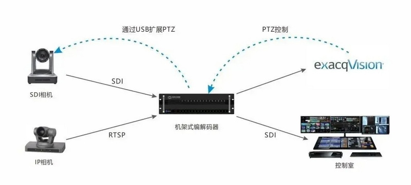 千視給出的答案是:在活動會場布置一套機(jī)架式編解碼器 - 即可實(shí)現(xiàn)一對多/多對一傳輸、多畫面監(jiān)看/互動以及跨互聯(lián)網(wǎng)制作/管理等功能。