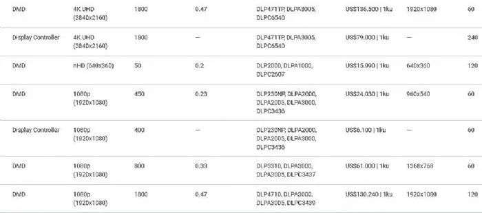 即,0.47的2K和0.47的4K dlp系統(tǒng)之間的“成本差異不大”。但2K和4K的分辨率體驗差距著實不小。0.47的DMD芯片也很容易上2000+的流明的亮度。所以,0.47英寸的DLP產(chǎn)品,已經(jīng)很少推出千流明、2K新品,目前在售這類產(chǎn)品都屬于歷史型號,且價格普遍高于0.33英寸DLP或者1LCD產(chǎn)品千元左右。