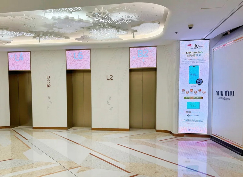 此外,在南京IFC其他樓層與區(qū)域,聯(lián)建光電LED大屏隨處可見。例如商場進(jìn)門處的直角柱拐角屏、扶梯處的圓柱形大屏、直梯門口的平面屏等,大屏設(shè)置在人流密集的地點,隨時隨地激活商業(yè)潛力。