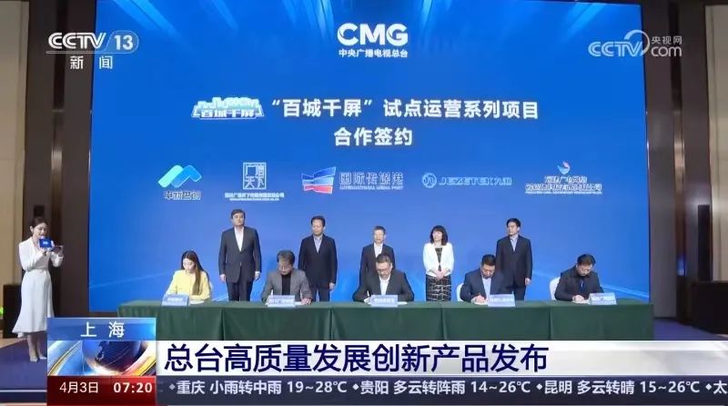 發(fā)布會上,中央廣播電視總臺相關(guān)部門與九洲集團旗下深圳市九洲光電科技有限公司、北京廣播電視臺、上海廣播電視臺、成都市廣播電視臺、騰訊視頻、中旅集團旅行服務(wù)有限公司等單位和企業(yè)簽署了“百城千屏”試點運營系列項目、“影觀中國·煥新產(chǎn)品”合作項目、《中國行Plus》大型系列融媒體活動合作項目、總臺5G+4K/8K+AI媒體應用實驗室合作項目等一系列合作協(xié)議。