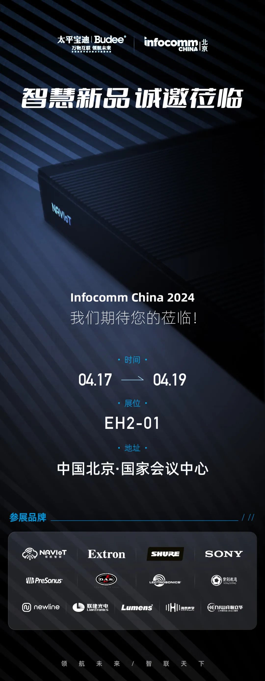 北京 infocomm China 2024 作為業(yè)內(nèi)首屈一指的專業(yè)視聽展會,匯聚了眾多視聽和信息通信技術(shù)行業(yè)的精英。作為智慧物聯(lián)領(lǐng)先企業(yè),太平寶迪攜手自主研發(fā)產(chǎn)品NAVIoT與Extron、Shure、Sony、DAS、PerSonus、紫荊視通、Newline、聯(lián)建光電、海泰聲學(xué)等眾多國內(nèi)外一線大品牌打造的NAVIoT業(yè)務(wù)生態(tài)鏈系統(tǒng),為參展觀眾帶來面向政府、企業(yè)、會展、教育等音視頻物聯(lián)網(wǎng)空間管理運維全方位專業(yè)解決方案。太平寶迪精心打造的“智慧大腦”將在Infocomm China 2024隆重亮相,敬請期待,更多精彩敬請咨詢、關(guān)注。