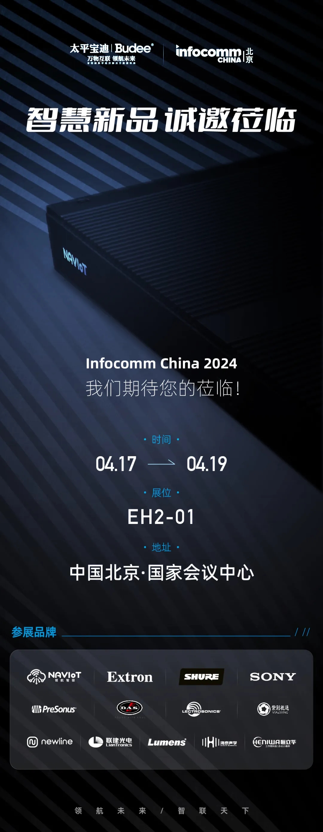 北京 infocomm China 2024 作為業(yè)內(nèi)首屈一指的專業(yè)視聽展會,匯聚了眾多視聽和信息通信技術(shù)行業(yè)的精英。作為智慧物聯(lián)領(lǐng)先企業(yè),太平寶迪攜手自主研發(fā)產(chǎn)品NAVIoT與Extron、Shure、Sony、DAS、PreSonus、紫荊視通、Newline、聯(lián)建光電、海泰聲學(xué)等眾多國內(nèi)外一線大品牌打造的NAVIoT業(yè)務(wù)生態(tài)鏈系統(tǒng),為參展觀眾帶來面向政府、企業(yè)、會展、教育等音視頻物聯(lián)網(wǎng)空間管理運維全方位專業(yè)解決方案。太平寶迪精心打造的“智慧大腦”將在Infocomm China 2024隆重亮相,敬請期待,更多精彩敬請咨詢、關(guān)注。