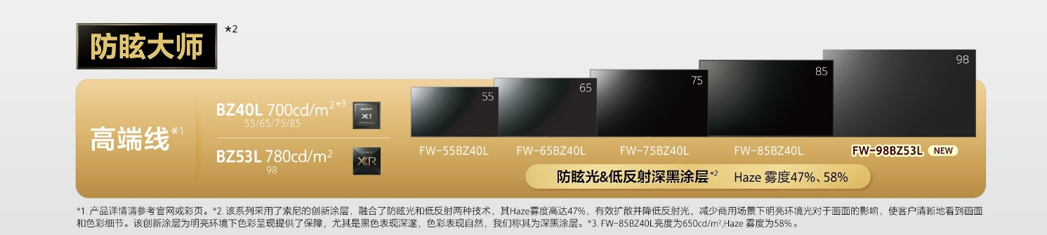 FW-98BZ53L“防眩大師*1”新品具有用戶青睞的XR芯片和防眩光&低反射功能、以及高亮度,可創(chuàng)造出色視覺體驗(yàn)