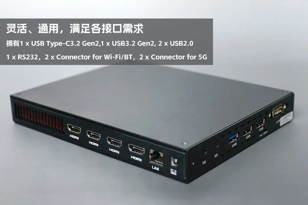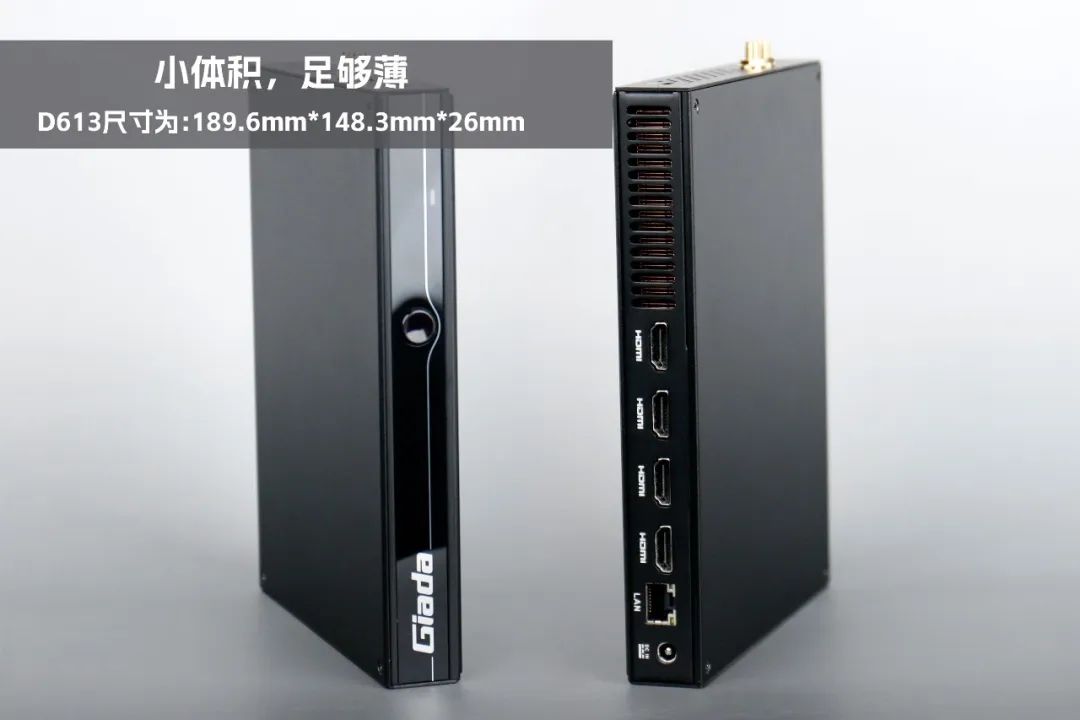 杰和科技D613采用Intel®第13代AlderLake處理器i3-1315U、i5-1335,比第11代性能提高19%,Intel® IRIS® Xe GPU (Core i5),圖形性能較上一代提升50%。支持4 x HDMI 2.0接口,提供多達(dá)4屏4K顯示(4096 x 2304@60Hz);支持1 x RJ45千兆網(wǎng)口,1 x E-Key M.2 (2230) for Wi-Fi/BT, 支持Wi-Fi 5, Wi-Fi 6, Wi-Fi 6E (CNVi),具備強(qiáng)大的網(wǎng)絡(luò)通信能力。支持1 x USB Type-C3.1,1 x USB3.1 2 x USB2.0,1 x RS232,1 x二合一音頻接口,拓展能力豐富,可以連接會(huì)議大屏、攝像頭、麥克風(fēng)、音響、U盤、擴(kuò)展塢、無(wú)線投屏等設(shè)備。