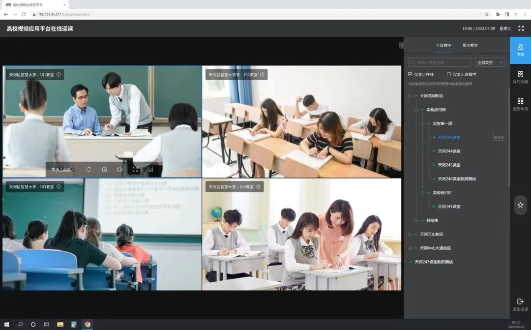 督導(dǎo)巡課適用于標(biāo)準(zhǔn)教室、階梯教室、極簡教室等,可以實(shí)現(xiàn)遠(yuǎn)程互動,大規(guī)模線上巡課應(yīng)用。同時(shí)AI自動分析+人工多維度評價(jià),滿足數(shù)字化多維度評價(jià)應(yīng)用,提升課堂教學(xué)質(zhì)量。