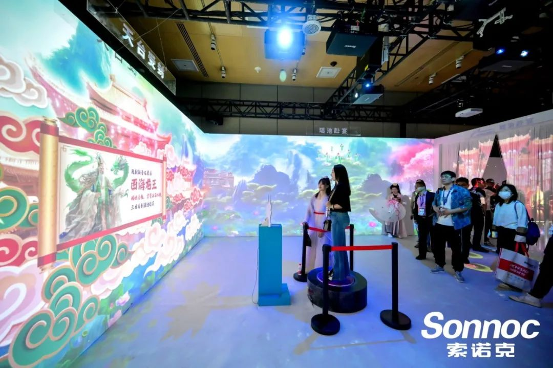 索諾克Sonnoc投影參加BJ InfoComm China2024展,不僅是對中國民族文化的弘揚,更是對投影技術(shù)在文旅微景觀、投影交互應(yīng)用以及線下娛樂沉浸式應(yīng)用等領(lǐng)域的深度探索。通過現(xiàn)代科技手段,索諾克Sonnoc投影將傳統(tǒng)文化與現(xiàn)代生活相結(jié)合,為觀眾帶來了一場前所未有的視聽盛宴。