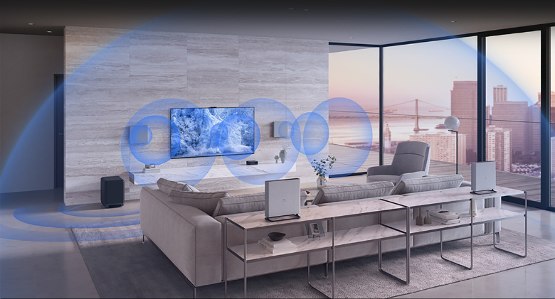 作為旗艦級(jí)無線家庭影院產(chǎn)品,HT-A9M2由四個(gè)無線揚(yáng)聲器組合成,融合出色美學(xué)藝術(shù)和高端音響技術(shù),不僅能提供卓越的環(huán)繞聲場,真實(shí)再現(xiàn)電影原聲,還能以優(yōu)雅而百搭的方式融入現(xiàn)代家居設(shè)計(jì),在大客廳或家庭影音室中,搭配電視或投影機(jī)打造沉浸視聽享受。