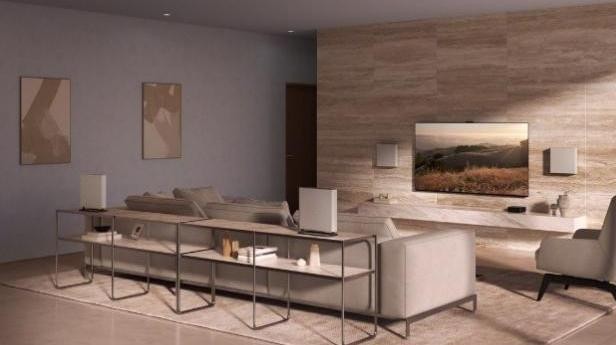 HT-A9M2外觀采用灰色織物且纖薄小巧,可根據(jù)家裝風(fēng)格選擇桌上擺放或掛墻,既美觀又節(jié)約空間,揚(yáng)聲器之間通過無線連接,布線簡潔干凈,適配多種家居環(huán)境。