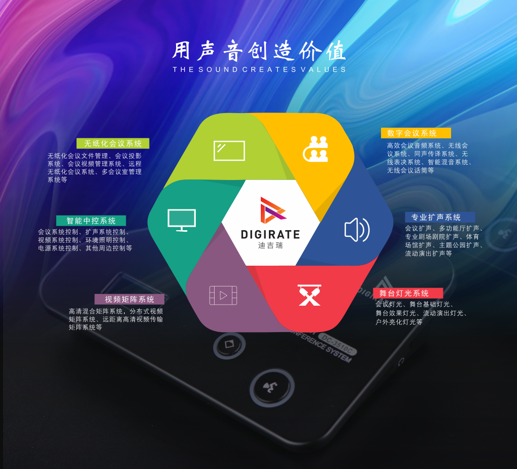 DIGIRATE(迪吉瑞)針對不同會議場景的需求,結合先進的音頻處理技術和定制化的聲學設計,確保聲音傳播均勻、清晰,為現(xiàn)場提供了有力的技術支持。這種聲臨其境的高品質聲音體驗,為場館提供全方位、多層次的感官享受,樹立起公共建筑聲學設計的新標桿。