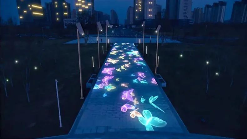 通常,互動投影會將虛擬圖像與建筑、樹木、地面等現(xiàn)實場景相結合,創(chuàng)造出一種全新的視覺體驗。