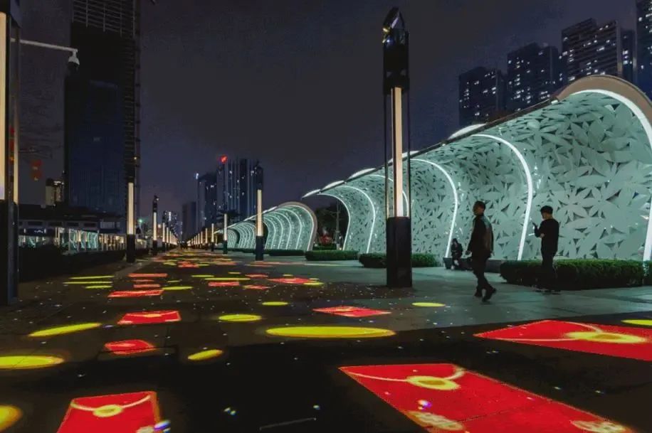 在智慧化建設的背景之下,通過將地面互動投影融入其中,打造出了具有互動元素的地面投影照明項目,使得公園已成為夜間充滿活力氛圍的熱門打卡地。