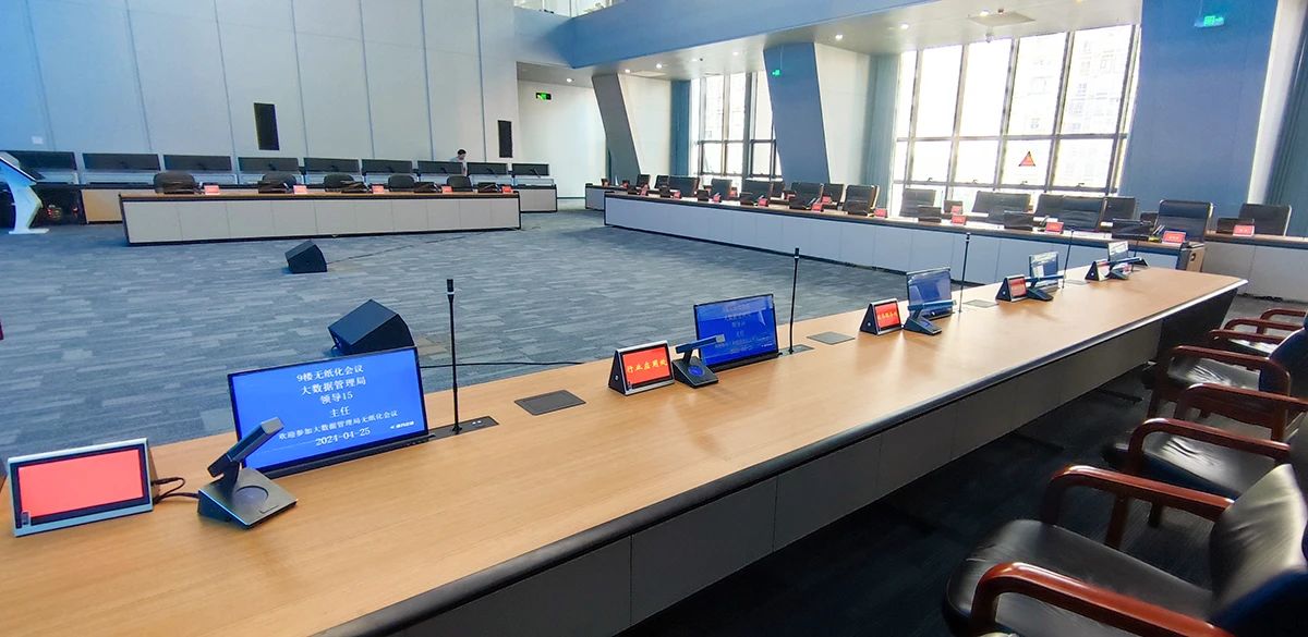 為了提高會議組織和協(xié)同辦公的效率,海南省大數(shù)據(jù)管理局還部署了東微無紙化會議系統(tǒng)和智能液晶電子桌牌。無紙化會議系統(tǒng)提供會議簽到、會議議程、投票表決、資料查閱、會議消息、一鍵同屏、會議服務(wù)等多種功能,與會人員可進行實時的會商和有效的信息溝通,充分滿足指揮調(diào)度、業(yè)務(wù)處置、高效辦公、交流展示等不同場景的應(yīng)用需求。
