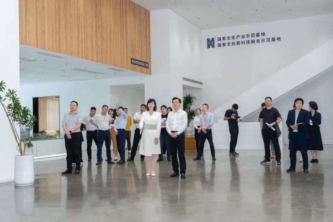 蔣紅波主任對(duì)明和集團(tuán)在文化+科技先進(jìn)制造業(yè)+現(xiàn)代服務(wù)業(yè)融合的科研實(shí)力和創(chuàng)新成果給予了充分肯定。他指出,文化和科技融合是明和集團(tuán)最具特色、最有潛力的優(yōu)勢(shì),長(zhǎng)沙經(jīng)開(kāi)區(qū)將一如既往地支持文化科技企業(yè)的發(fā)展,提供更好的政策環(huán)境和市場(chǎng)機(jī)遇。同時(shí),他鼓勵(lì)明和以科技創(chuàng)新驅(qū)動(dòng)發(fā)展,繼續(xù)發(fā)揮自身資源優(yōu)勢(shì),吸引更多上下游企業(yè)聚集,打造更具競(jìng)爭(zhēng)力的文化產(chǎn)業(yè)集群,為長(zhǎng)沙乃至全國(guó)的文化產(chǎn)業(yè)發(fā)展做出更大的貢獻(xiàn)。