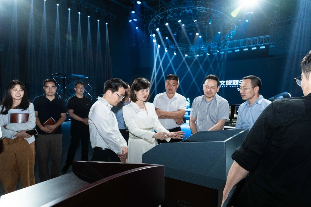 (調(diào)研組一行體驗(yàn)文化裝備體驗(yàn)中心,在燈光、視頻和舞臺(tái)機(jī)械的聯(lián)袂演繹下,打開(kāi)如夢(mèng)似幻的靈動(dòng)空間)