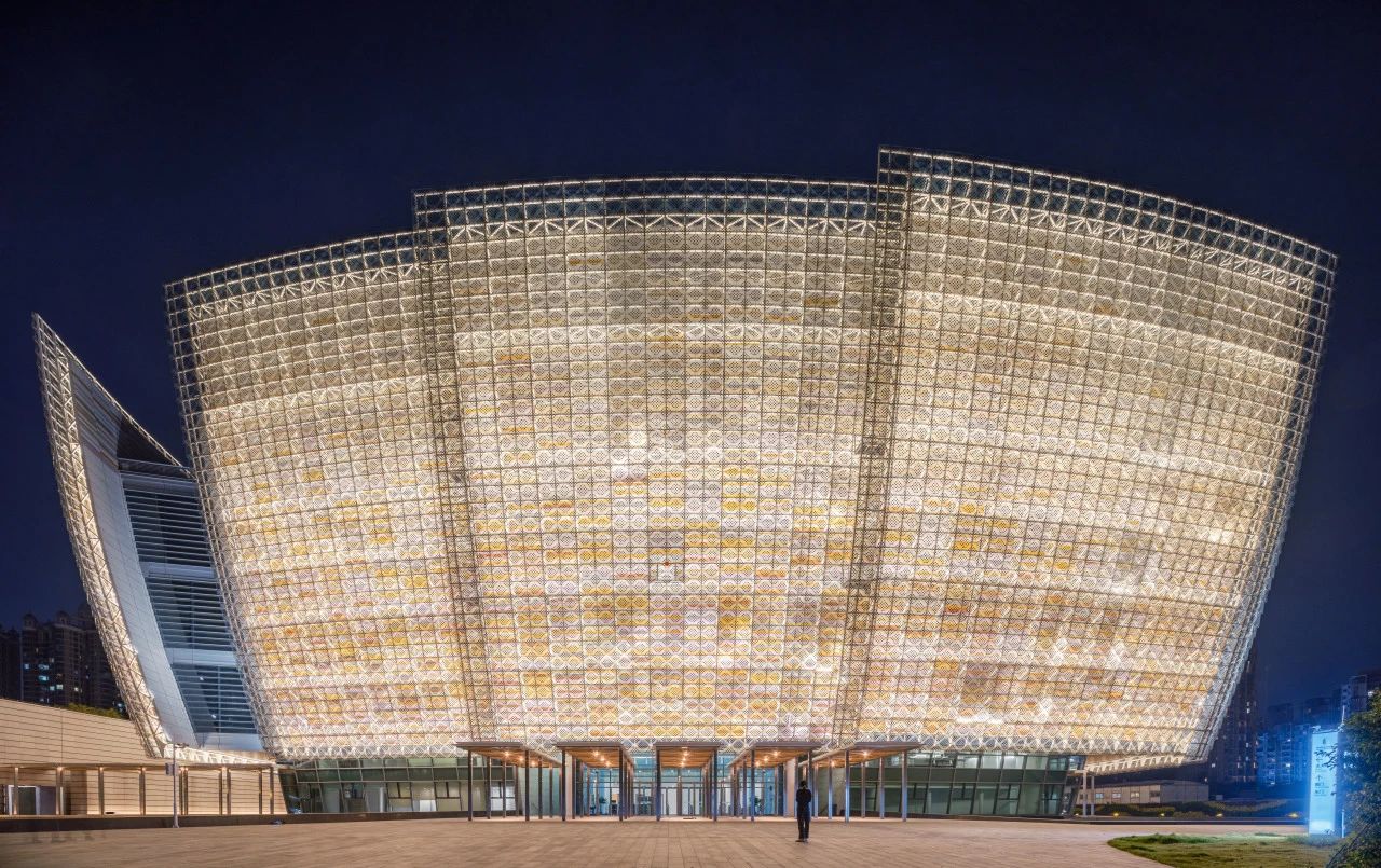 全新開放的廣州美術(shù)館新館,足夠給人一個“大寫的震撼”。5個外立面的幕墻如花瓣,白日反射著光影,閃爍著波光粼粼,夜里點(diǎn)亮了燈光,神秘且絢麗。