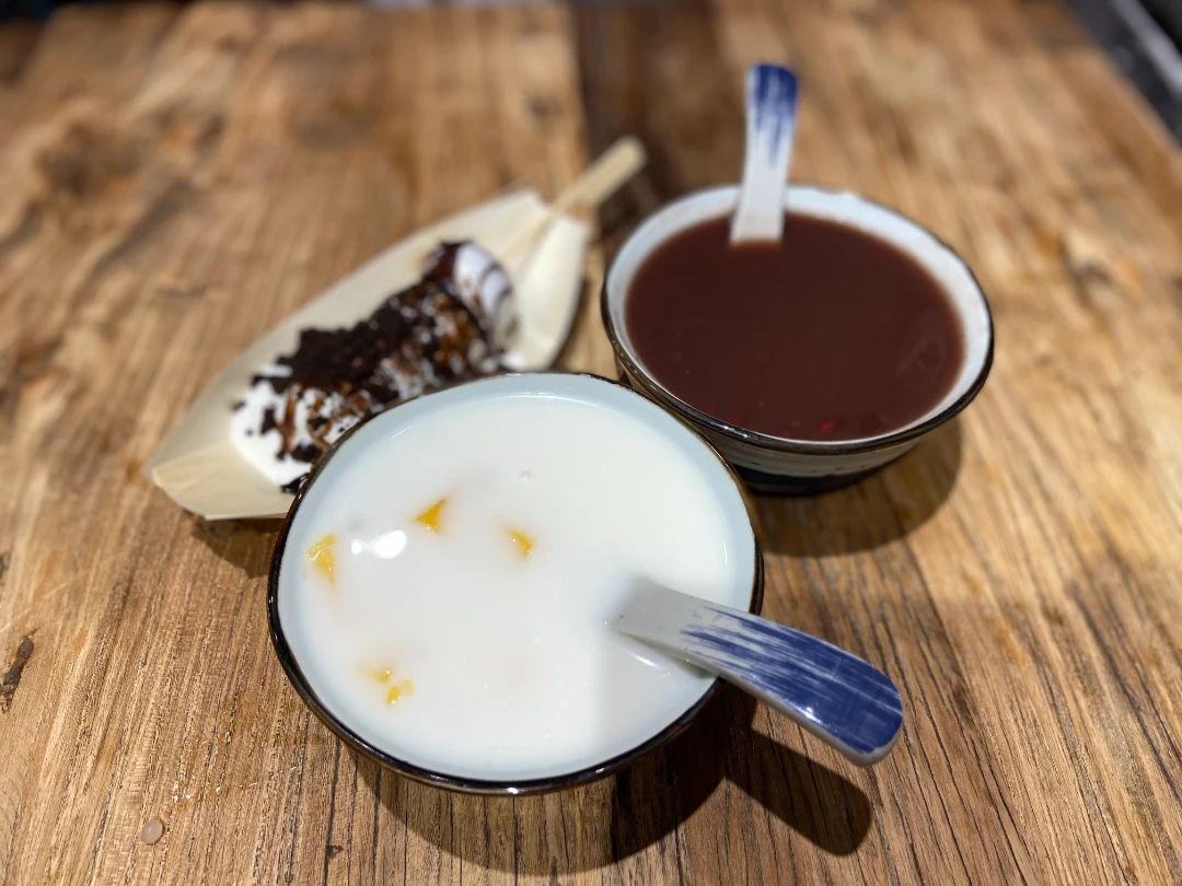 檐緣梁枋巧飾雕琢,傳統(tǒng)美食獨(dú)具特色。糯米椰糍、炸牛奶、雞蛋卷、雙皮奶、涼拌魚皮、當(dāng)當(dāng)云吞……各式美味小吃應(yīng)接不暇,絕對是甜品愛好者的天堂。