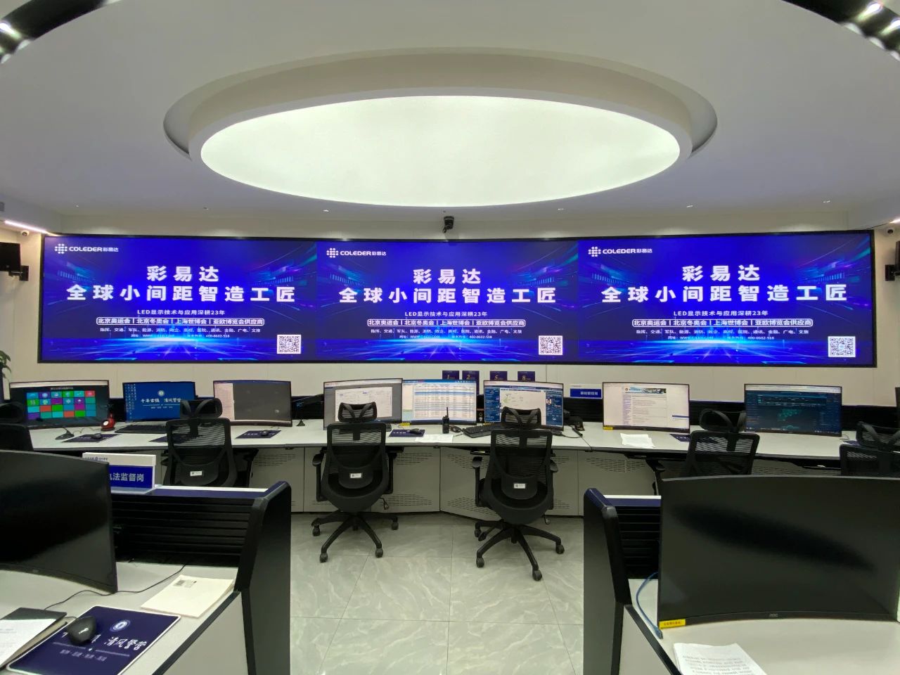 此項(xiàng)目LED顯示屏采用彩易達(dá)麒麟甲系列A1.2產(chǎn)品,整屏可分成三塊高清顯示區(qū)域,實(shí)現(xiàn)多終端同步展示,超長超高清大屏幕分畫面實(shí)現(xiàn)集中顯示,信息互通互聯(lián),可供工作和決策人員做出快速判斷和應(yīng)對。