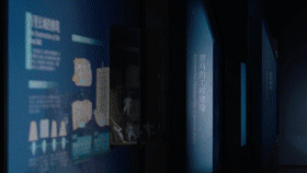 譬如序廳的球屏,就將秦漢版圖的變化置于世界格局之中,透過(guò)LED創(chuàng)意顯示裝置與史實(shí)資料,生動(dòng)詮釋秦漢文明之于中文明發(fā)展的奠基性作用。