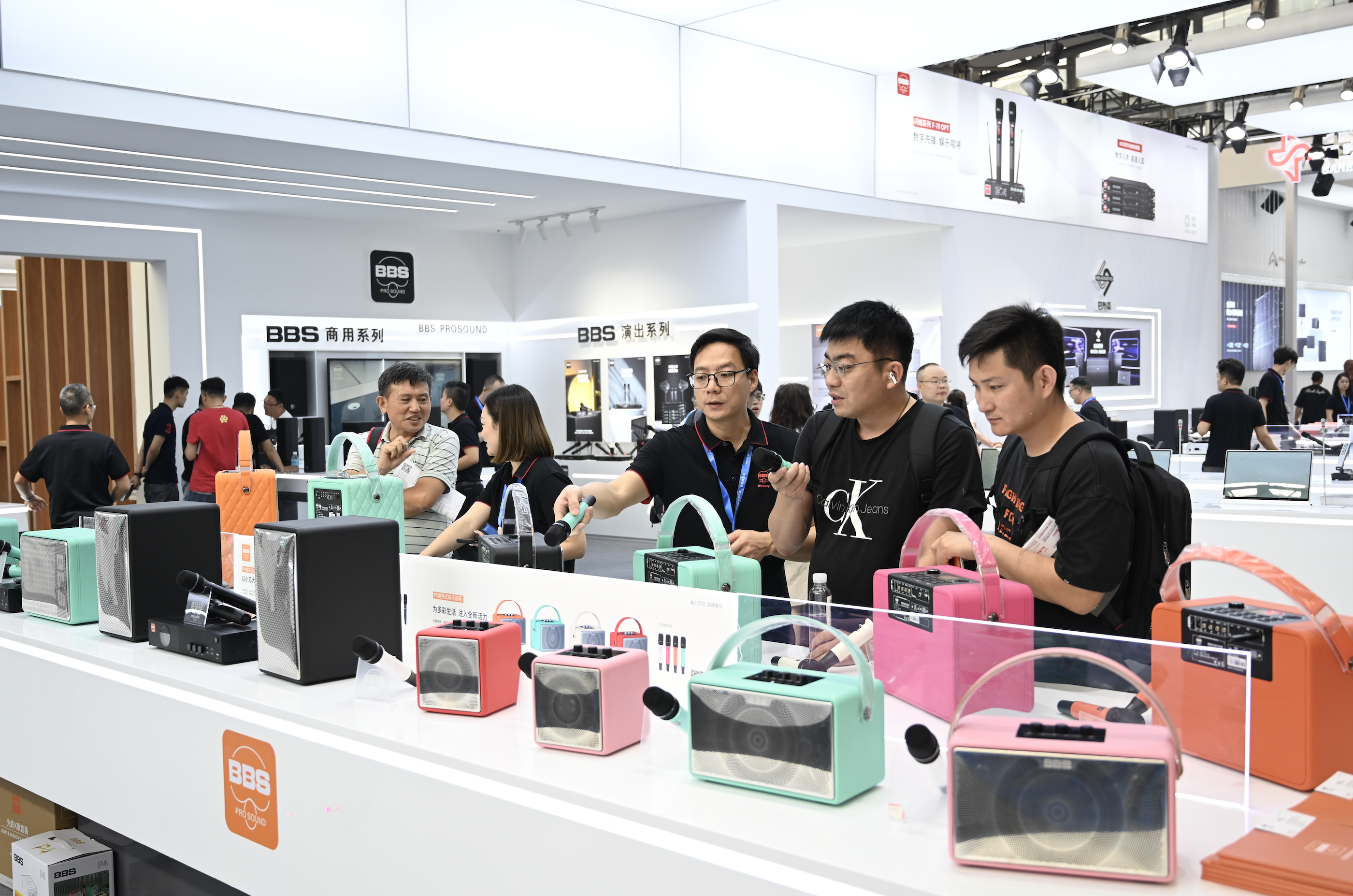 BBS品牌今年廣展帶來了一系列的創(chuàng)新產(chǎn)品,娛樂系統(tǒng)的OPT數(shù)字化升級產(chǎn)品,通過引入先進的技術(shù)和創(chuàng)新的設(shè)計理念,為用戶提供了更加出色的音頻體驗;民品系統(tǒng)的便攜式娛樂音箱,時尚的色彩和設(shè)計,專業(yè)的功能和音質(zhì),智能的操控和調(diào)節(jié)為好兄弟聲學(xué)展位增添一抹不一樣的色彩,小巧輕便、無線連接、高品質(zhì)音效、耐用設(shè)計和多功能、多場景使用等特點吸引眾多客商體驗;商用系統(tǒng)的無紙化會議系統(tǒng),無線會議系統(tǒng),無線演出系統(tǒng)等產(chǎn)品,不僅功能強大、特色鮮明,而且應(yīng)用場景廣泛,能夠滿足不同行業(yè)的需求;教育系統(tǒng)展出的E-BOX是一款集無線話筒模塊、無線音箱模塊、音頻前級、音頻中控等N合一終端,為教室等教育場景提供非凡聲音性能和便捷操控體驗。