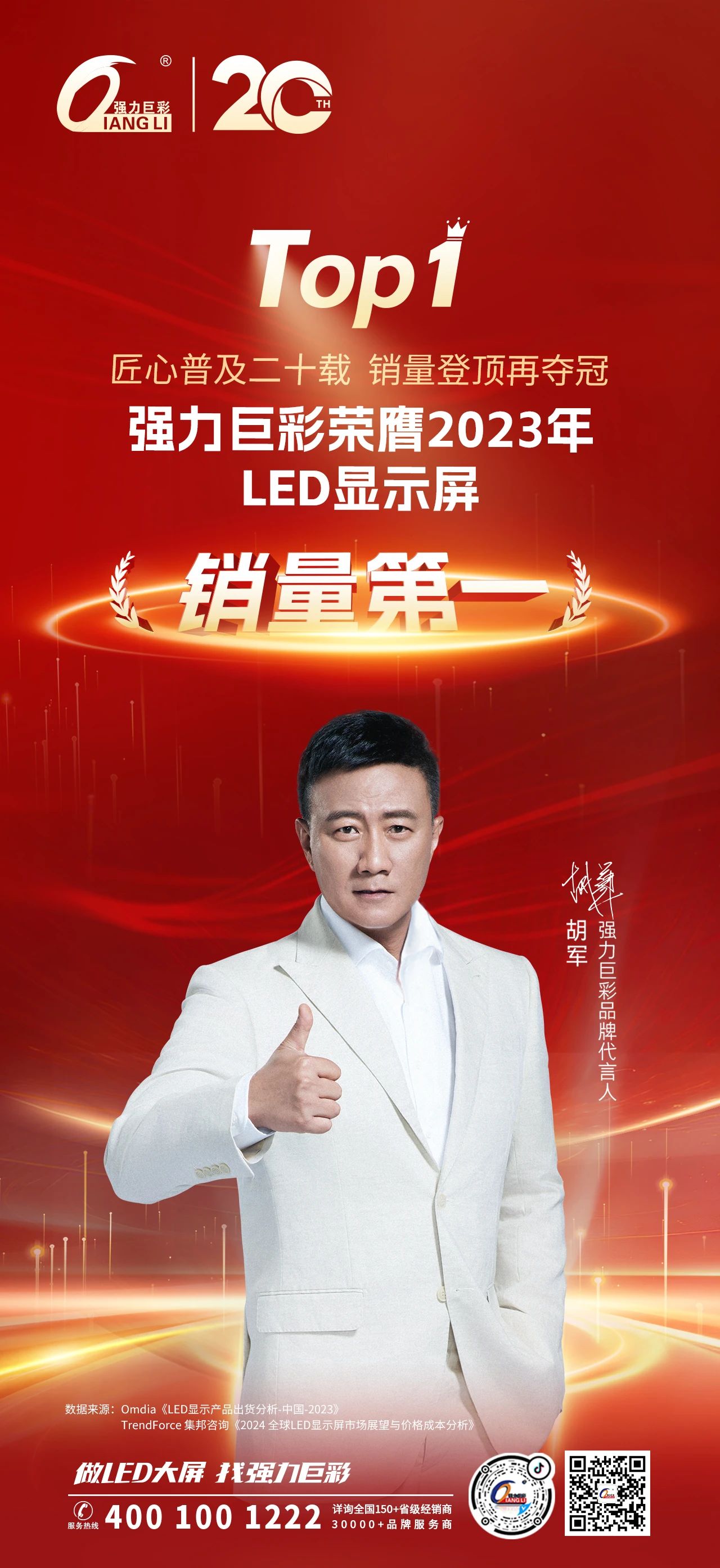 Top 1! 強(qiáng)力巨彩榮膺2023年LED顯示屏銷量第一!