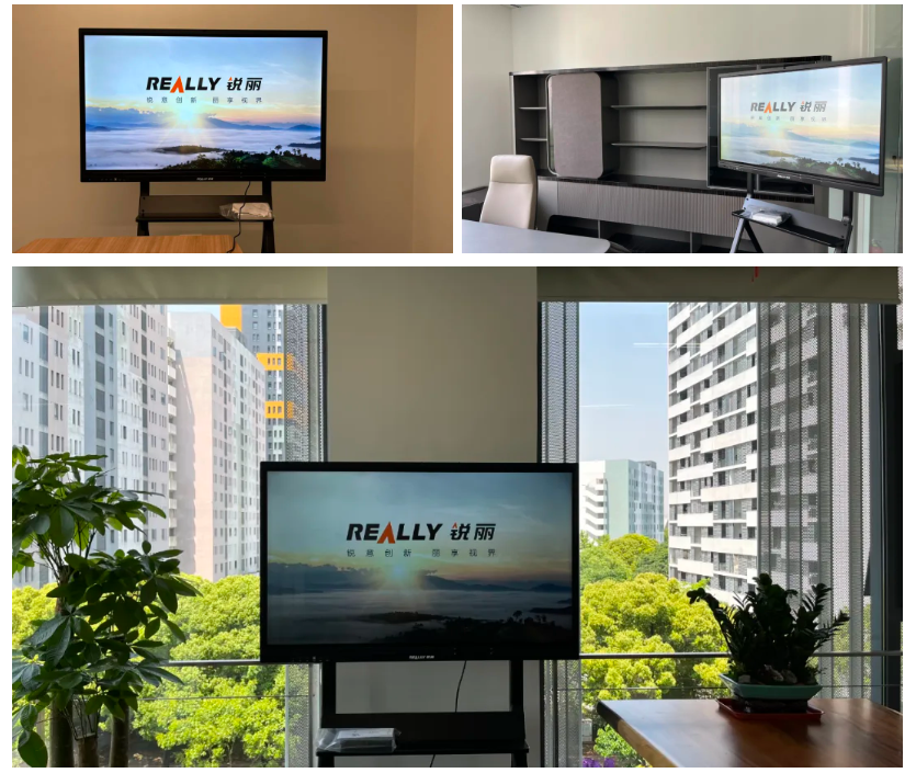 上海某大廈位于上海浦東新區(qū)高科技園區(qū),其多間會(huì)議室選用了Really銳麗98寸、65寸、55寸智能會(huì)議平板,均內(nèi)置高清攝像頭,采用移動(dòng)式安裝,滿(mǎn)足不同空間和場(chǎng)景的實(shí)用需求,為辦公樓營(yíng)造更為理想的辦公環(huán)境。