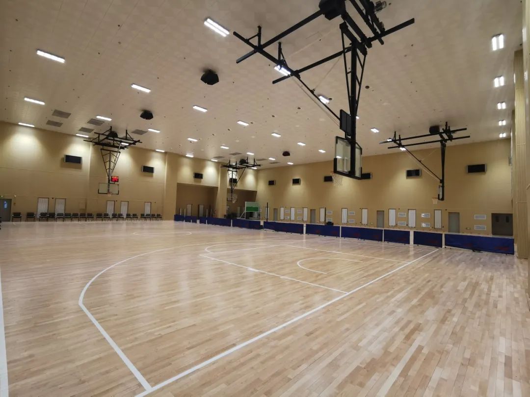 體育中心一層分訓(xùn)練館和籃球館,訓(xùn)練館面積約600平方米,籃球館面積1000余平方米。