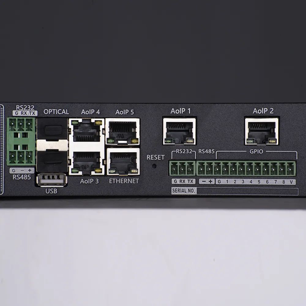 體育中心一層使用了CMX系列16進16出音頻矩陣共2臺,支持多種音頻處理和傳輸技術(shù),具有高品質(zhì)的前置放大電路和DSP處理總線結(jié)構(gòu),每臺負(fù)責(zé)一個區(qū)域的音頻信號處理。