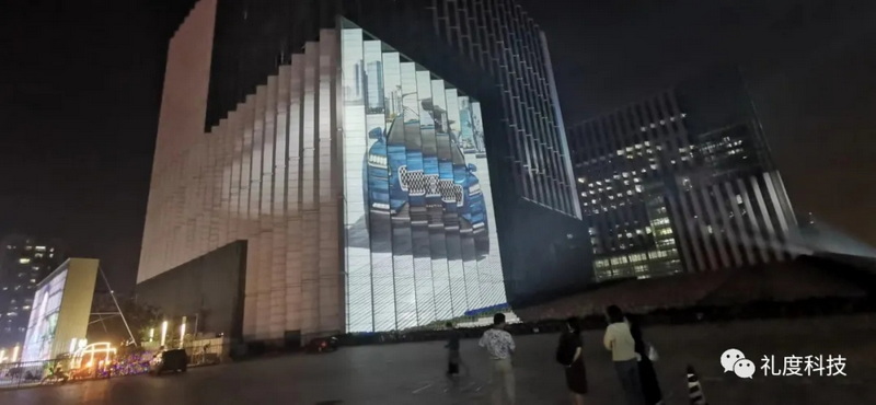 4、這種投影方式是通過強(qiáng)光源將動畫投射到建筑物上的,不需要再對建筑物進(jìn)行其他加工。