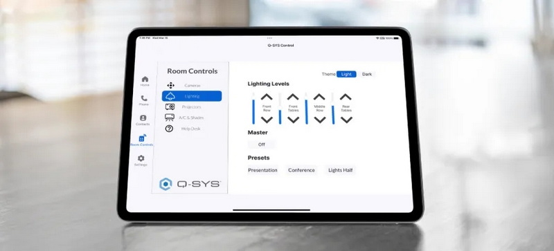 新的 Q-SYS Control for Zoom Rooms 應(yīng)用程序提供了在認(rèn)證的 Zoom Rooms 控制器上直接顯示 Q-SYS 用戶(hù)控制界面(UCI)的功能。無(wú)縫控制連接到 Q-SYS Core 的房間設(shè)備和服務(wù),包括音頻、視頻、顯示屏、照明、遮陽(yáng)、環(huán)境控制等,都在您熟悉的 Zoom Rooms 控制器上。