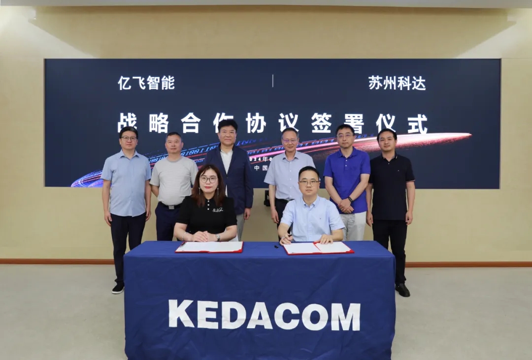 蘇州科達副總經(jīng)理范建根與億飛智能執(zhí)行董事吳佳佳代表雙方簽署協(xié)議,蘇州科達董事長陳冬根與億飛智能科技有限公司首席執(zhí)行官冼大衛(wèi)等一同出席了簽字儀式。