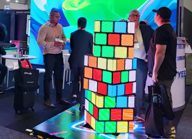 步入新亞勝的展位現(xiàn)場(chǎng),就像是進(jìn)入了一個(gè)藝術(shù)空間。貓臉背景屏、吊裝畫(huà)框屏、個(gè)性錯(cuò)位屏、疊層魔方屏……造型多樣的LED顯示大屏呈現(xiàn)出別具一格的視覺(jué)效果和多元的應(yīng)用潛力,引得眾多觀展人員駐足停留,上前咨詢產(chǎn)品信息。
