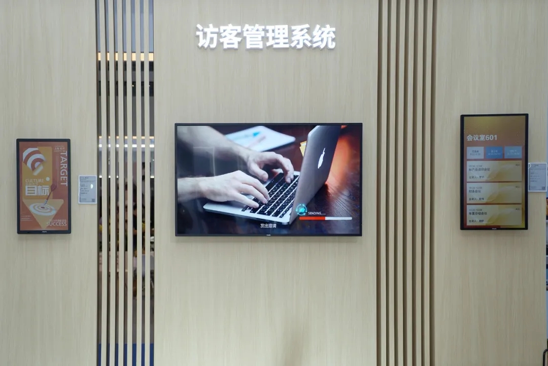 飛利浦商顯以信息實(shí)時(shí)更新、動(dòng)態(tài)展示的數(shù)字標(biāo)牌;節(jié)能降耗、全彩顯示的彩色墨水屏等,打造集信息展示、智能管控、個(gè)性部署等軟硬件一體化解決方案,進(jìn)行多維信息宣傳和高效訪客管理。