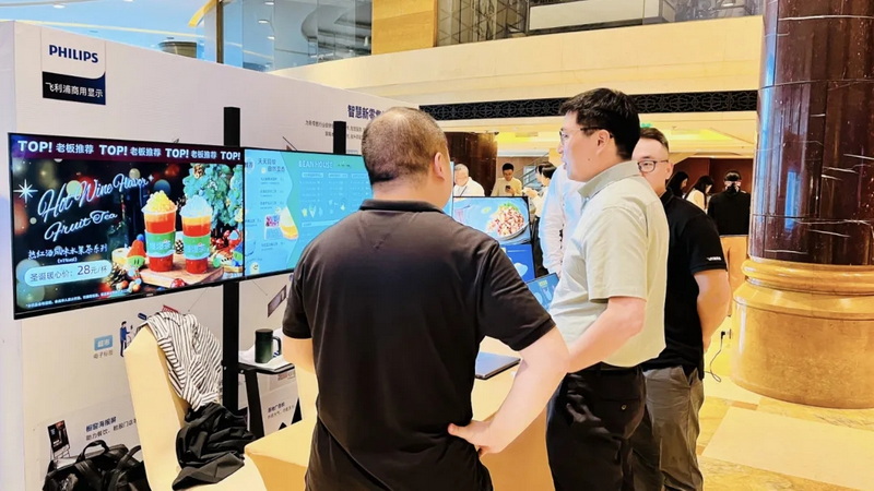 此次,飛利浦商顯攜24"吧臺(tái)屏、21:9吧臺(tái)屏、數(shù)字標(biāo)牌、落地電子水牌等產(chǎn)品及數(shù)字化餐飲零售解決方案亮相論壇現(xiàn)場(chǎng),展現(xiàn)新技術(shù)、新應(yīng)用、新方案,賦能餐飲零售行業(yè)數(shù)智升級(jí),打造集品牌宣傳、餐飲品展示、點(diǎn)餐叫號(hào)等一站式餐飲門店解決方案,助力門店信息宣傳,聚焦消費(fèi)者目光,提升門店人氣。