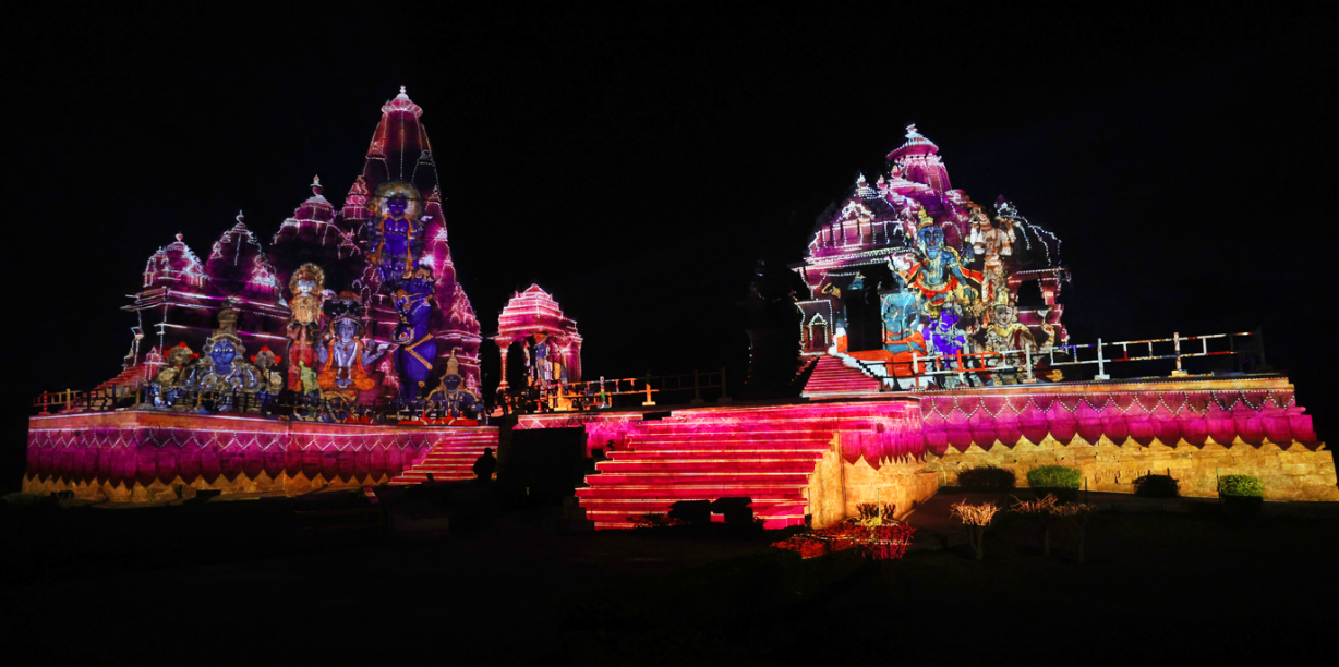 印度克久拉霍(2025年2月27日):位于中央邦的聯(lián)合國(guó)教科文組織世界遺產(chǎn)地——克久拉霍寺廟(Khajuraho Temples),正在上演一場(chǎng)震撼人心的全新燈光音樂(lè)秀。這場(chǎng)表演結(jié)合了投影映射、全息影像、動(dòng)態(tài)燈光和5.1聲道音頻,為觀眾帶來(lái)如夢(mèng)似幻的沉浸式體驗(yàn)。