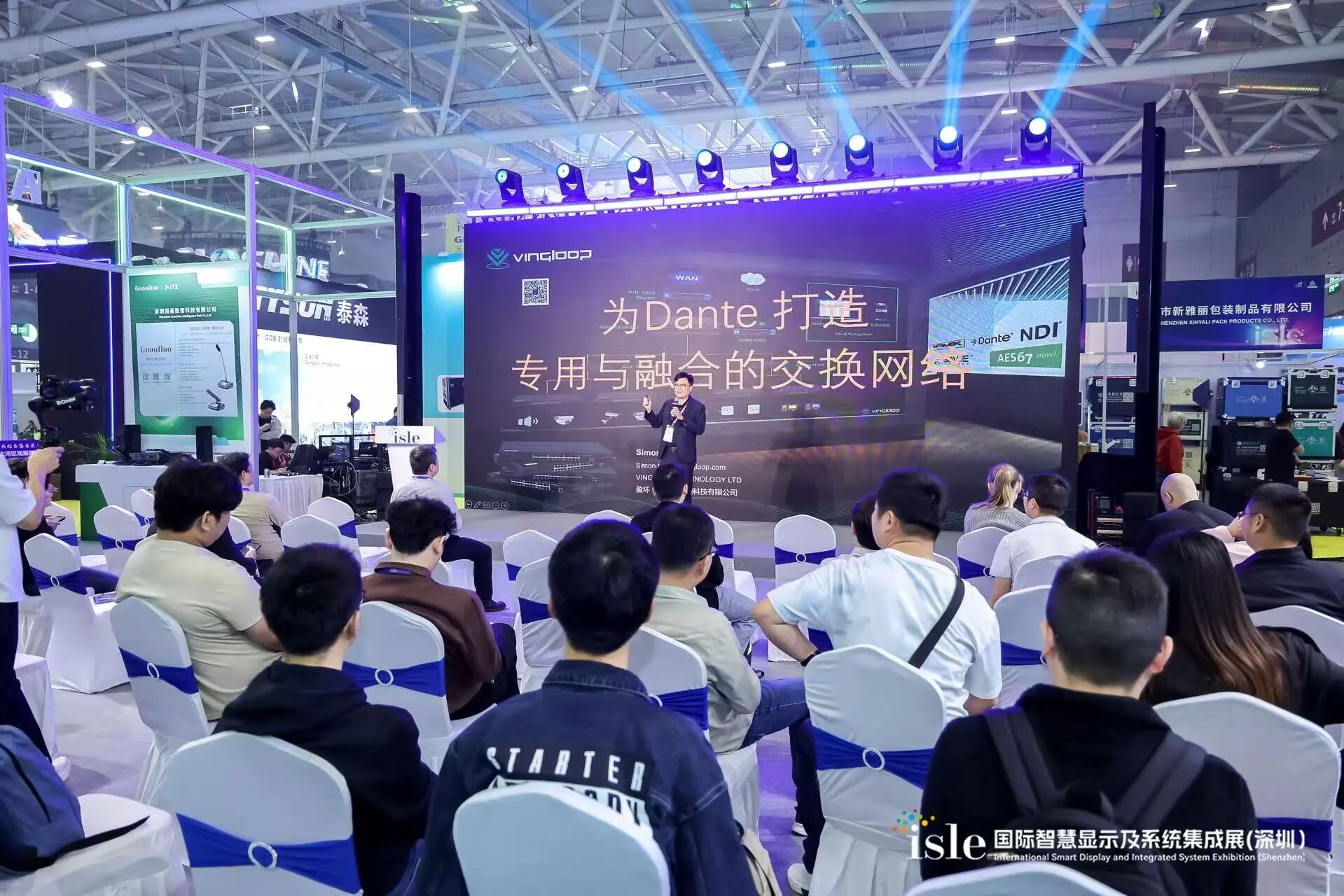 AI音視頻云與會(huì)議系統(tǒng)專區(qū)由Dante、NDI兩大聯(lián)盟組織領(lǐng)銜,匯聚易科、國(guó)薈、千視、安瑞視、聲菲特、同創(chuàng)、哲聞、VINGLOOP等多家音視頻集成企業(yè),展示面向未來(lái)辦公與溝通場(chǎng)景的前沿技術(shù)與解決方案。同期三場(chǎng)論壇干貨滿滿,云集專業(yè)音視頻領(lǐng)域頂級(jí)智囊,分享包括音響系統(tǒng)搭建效率思路、AI-Dante網(wǎng)絡(luò)連接技術(shù)邏輯、百度AI營(yíng)銷工具使用等內(nèi)容,人氣爆棚。